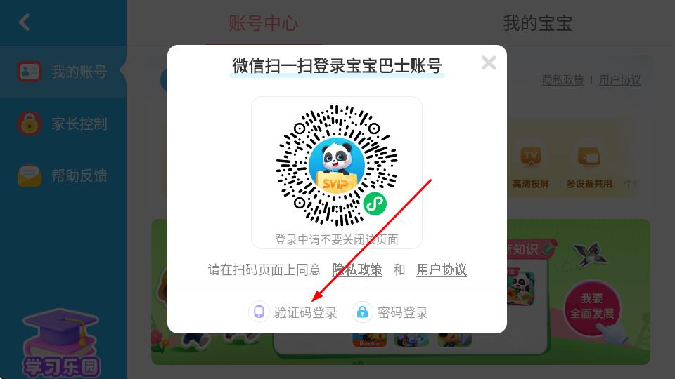 3、在彈出的登錄方式選擇窗口中,點擊下方的驗證碼登錄選項。