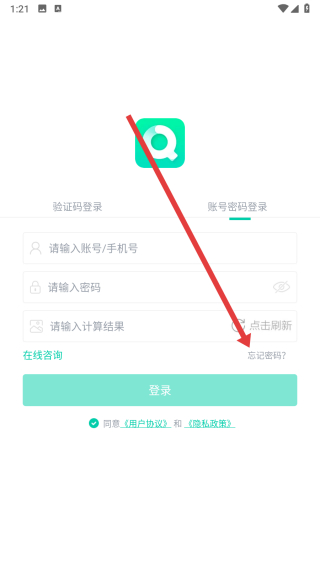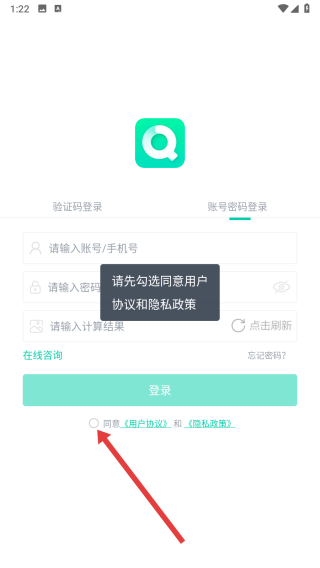 1、忘記密碼的情況下,在點(diǎn)擊忘記密碼按鈕前,需先點(diǎn)擊勾選同意按鈕后才可操作。