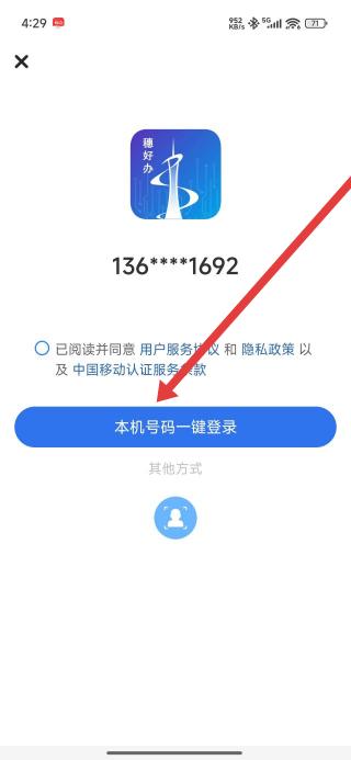 2、在登錄頁(yè)勾選用戶服務(wù)協(xié)議及隱私政策等,點(diǎn)擊本機(jī)號(hào)碼一鍵登錄按鈕,完成首次登錄及賬號(hào)注冊(cè)。
