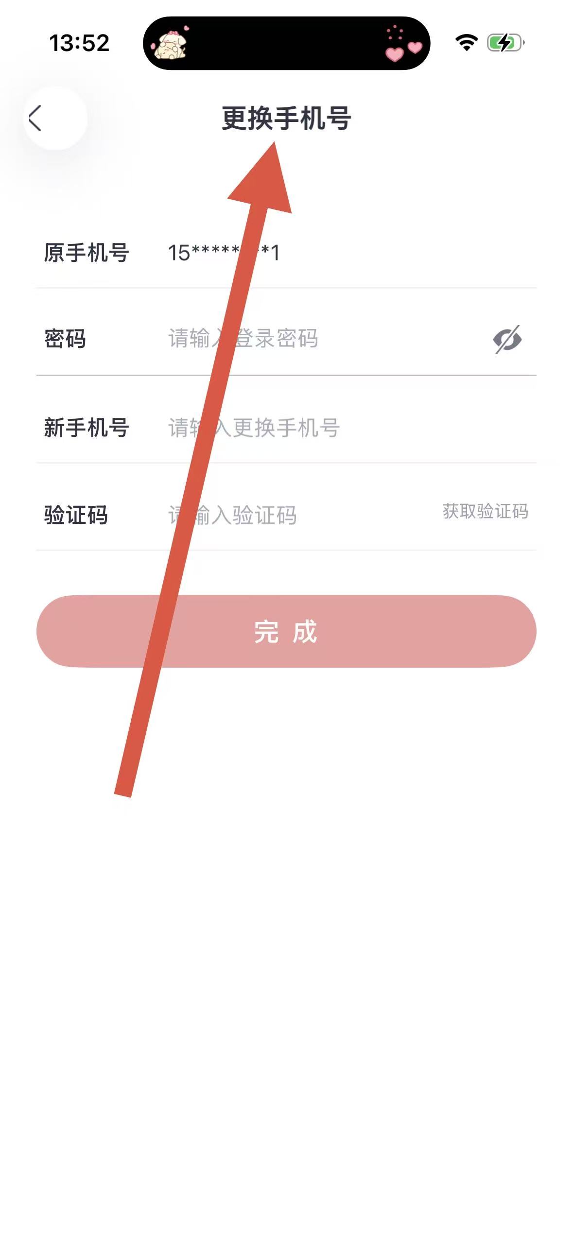 4、在更換手機(jī)號(hào)頁(yè)面,輸入原手機(jī)號(hào)、密碼、新手機(jī)號(hào)以及獲取的驗(yàn)證碼,然后點(diǎn)擊完成,即可完成手機(jī)號(hào)更換操作。