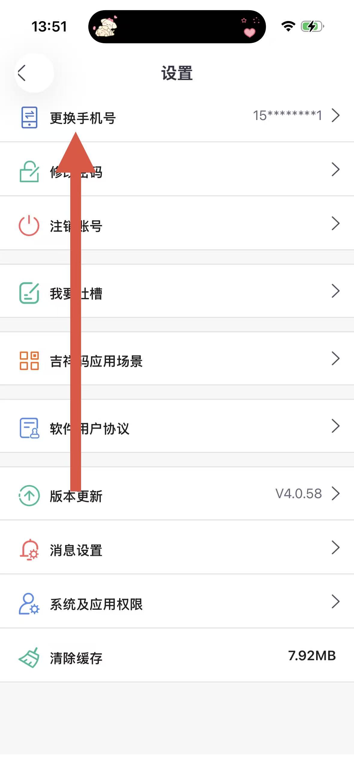 3、在設(shè)置界面中,點(diǎn)擊更換手機(jī)號(hào)選項(xiàng),進(jìn)入更換手機(jī)號(hào)頁(yè)面。