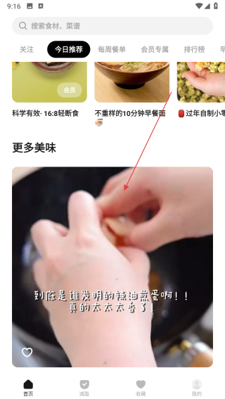 1、打開懶飯APP,在首頁挑選想要記錄的菜譜,點(diǎn)擊該菜譜進(jìn)入視頻播放頁面。