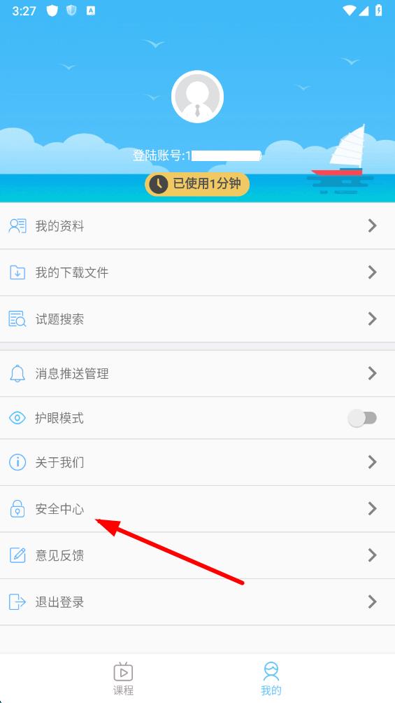 2、在個(gè)人界面中,找到并點(diǎn)擊安全中心選項(xiàng),進(jìn)入安全中心頁(yè)面。
