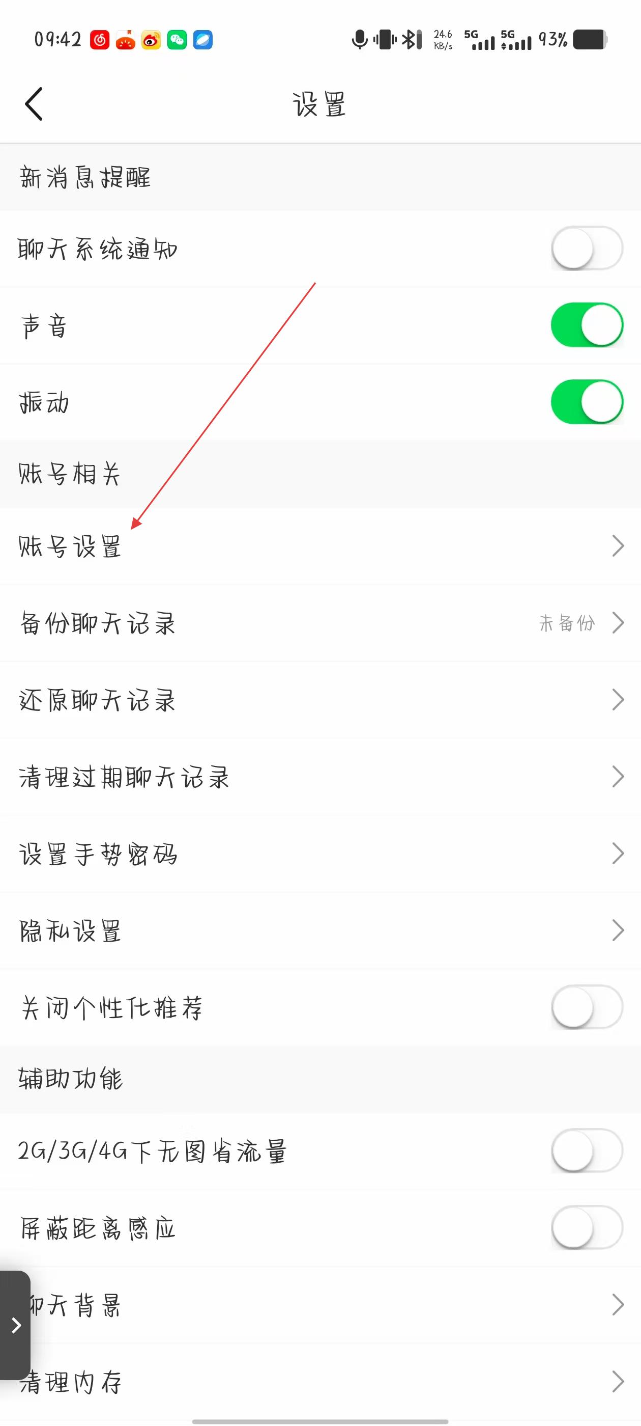 2、在設(shè)置界面中,點(diǎn)擊賬號(hào)設(shè)置選項(xiàng),進(jìn)入賬號(hào)設(shè)置頁面。