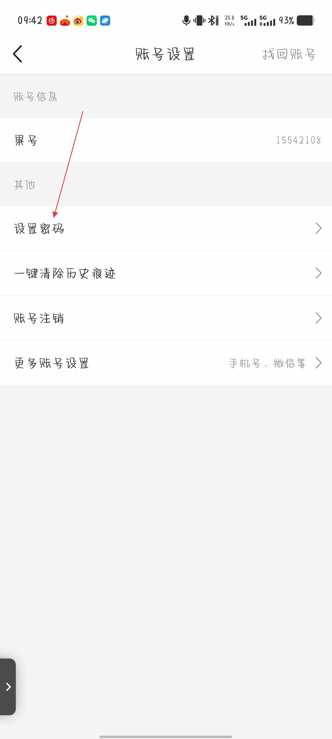3、在賬號(hào)設(shè)置頁面里,點(diǎn)擊設(shè)置密碼選項(xiàng),進(jìn)入設(shè)置密碼界面。