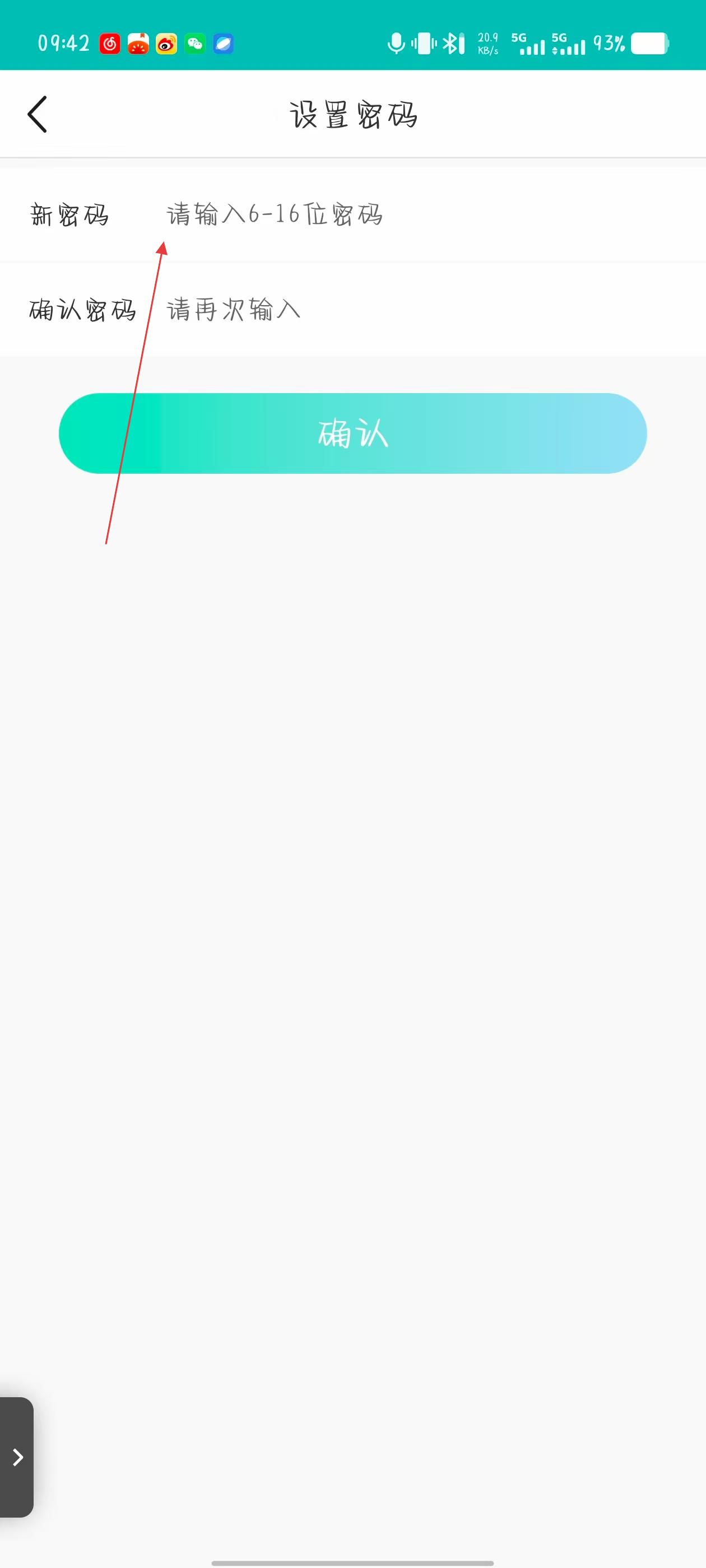 4、在設(shè)置密碼界面,于新密碼欄輸入6-16位密碼,再在確認(rèn)密碼欄重復(fù)輸入該密碼,最后點(diǎn)擊確認(rèn)按鈕。