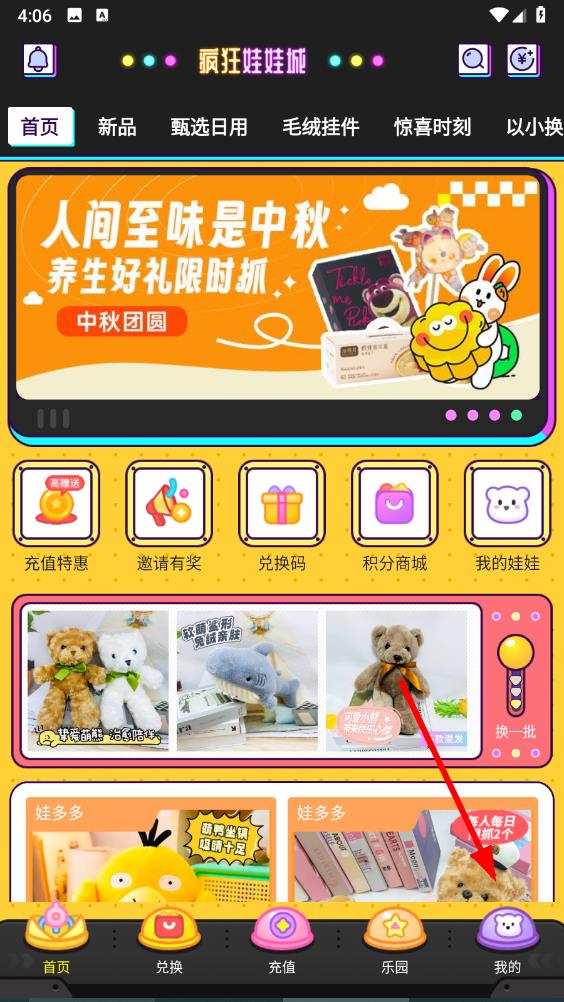1、打開(kāi)瘋狂娃娃城app,進(jìn)入主界面,點(diǎn)擊底部導(dǎo)航欄最右側(cè)的我的,進(jìn)入個(gè)人中心。