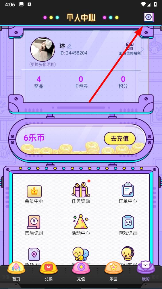 2、在個(gè)人中心界面中,點(diǎn)擊右上角的設(shè)置圖標(biāo),進(jìn)入設(shè)置頁(yè)面。