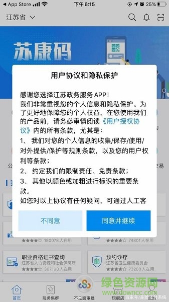 1、首先在本頁面下載蘇康碼app,成功安裝到手機(jī)上之后,打開APP點(diǎn)擊“同意并繼續(xù)”,如下圖