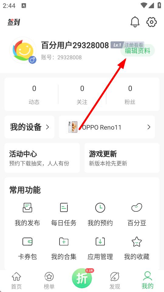 2、在我的頁面中,點(diǎn)擊賬號(hào)旁的編輯資料按鈕。