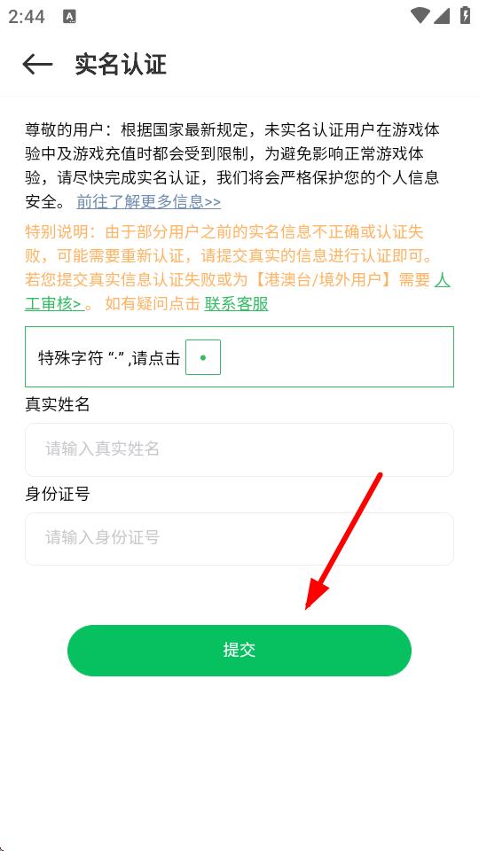 4、在實(shí)名認(rèn)證頁面,輸入真實(shí)姓名和身份證號(hào),確認(rèn)無誤后點(diǎn)擊提交,即可完成實(shí)名認(rèn)證。