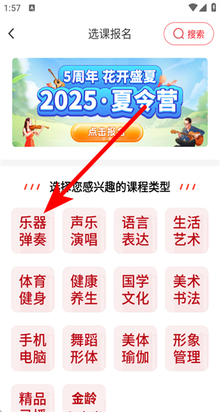 2、在選課報(bào)名的頁(yè)面,選擇感興趣的課程類型,進(jìn)入對(duì)應(yīng)課程分類頁(yè)面。