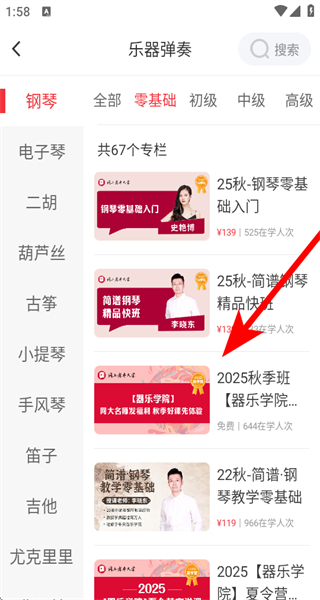 3、在課程分類的頁(yè)面,選擇目標(biāo)課程,進(jìn)入課程詳情的頁(yè)面。