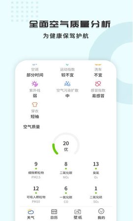 穿衣建議、感冒指數(shù)、運(yùn)動(dòng)指數(shù)、洗車建議、化妝建議,紫外線強(qiáng)弱等功能,成為你的生活小貼士!