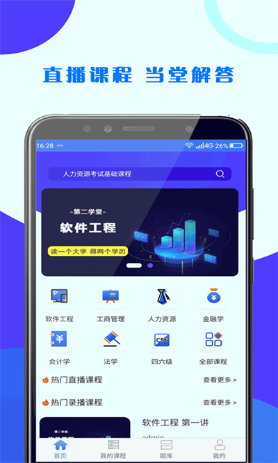 第二學(xué)堂軟件的教育非常的不錯(cuò),這里有專業(yè)的老師在線教學(xué)指導(dǎo),超多的習(xí)題練習(xí),還有真實(shí)的考場模擬情景了,多種不同的課程用戶可以自由的選擇,短時(shí)間內(nèi)也能明顯的看到學(xué)習(xí)進(jìn)步。