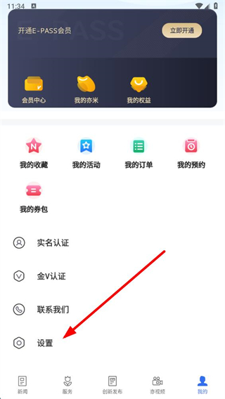 2、在我的頁面,下滑底部點擊設置選項,進入設置頁面。