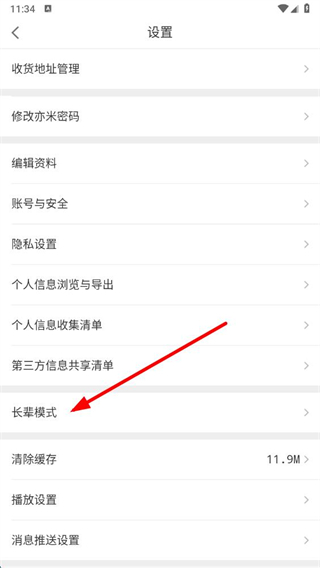 3、在設置頁面,點擊長輩模式選項,進入長輩模式頁面。