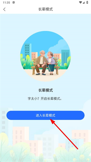 4、進入長輩模式頁面后,點擊進入長輩模式按鈕,即可開啟該模式。