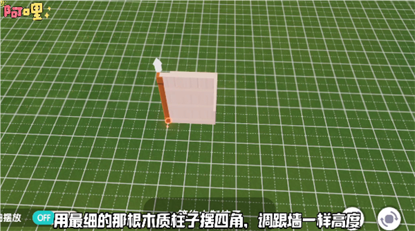 1、首先在建材庫之中選擇一個木樁子,調節(jié)成比墻體高的高度,并在墻體的四個角都安置上木樁子;