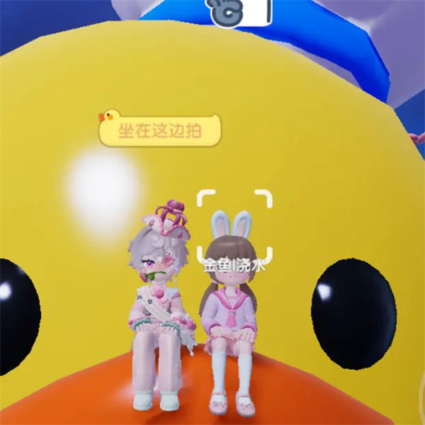 2、第二個:和好友在小黃鴨跳跳臺的鴨子嘴巴上坐著拍照;