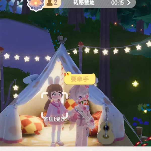 7、第七個:開啟螢火蟲潮,在第二階段時和好友在帳篷旁牽手并且拍照。