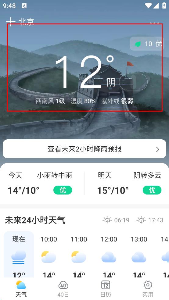 實時天氣情況查詢,當天每一個時間點的天氣都可以詳細查看;