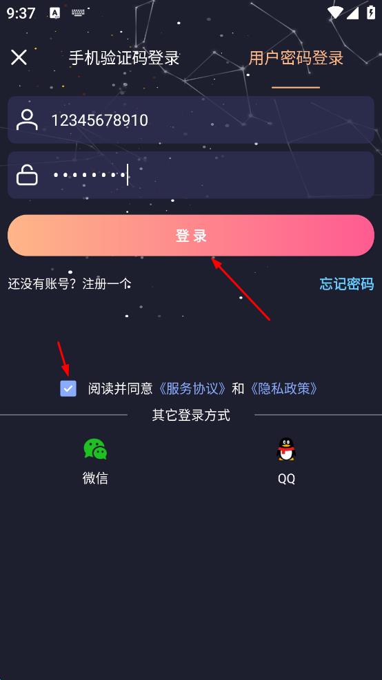 4、勾選閱讀并同意服務(wù)協(xié)議和隱私政策,然后點(diǎn)擊“登錄”按鈕,完成登錄操作。