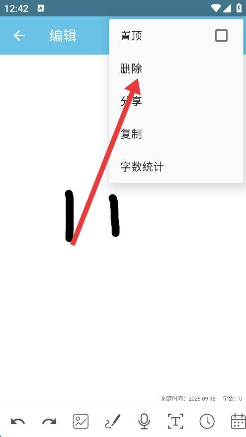 2、在筆記編輯頁面,點擊右上角的更多圖標(biāo),彈出操作菜單。