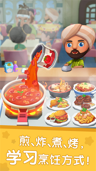 孩子們可以在游戲中扮演餐廳主廚,烹飪中式、西式、日料等各式菜肴,招待顧客,參加廚藝賽,賺取財(cái)富升級(jí)餐廳裝飾、增開新店等等。