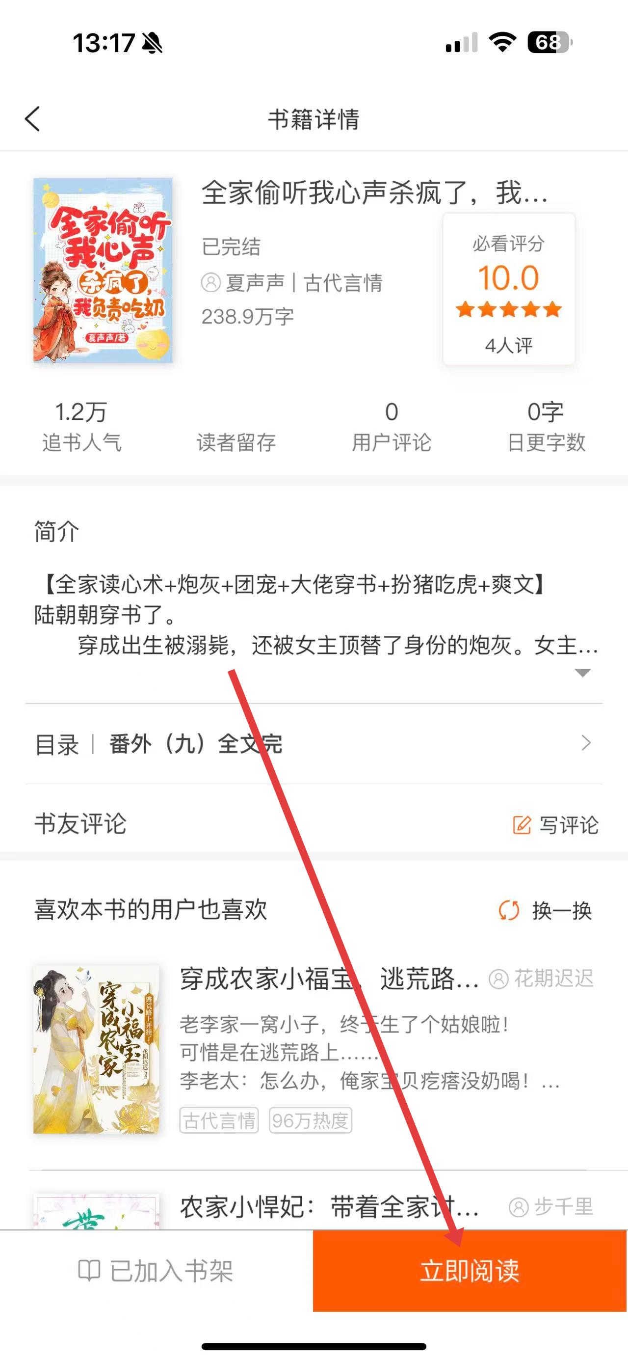 2、在小說閱讀界面,點擊立即閱讀進入閱讀界面。