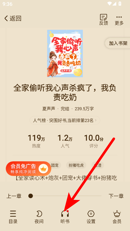 2、在書籍詳情頁面,點擊聽書選項,進入聽書界面。