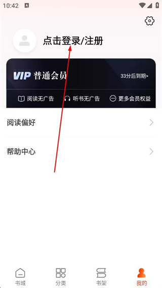 2、在個人中心頁面點擊點擊登錄/注冊,進入登錄注冊界面。
