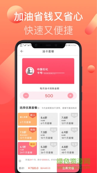 亮科石化加油APP是中國(guó)石化、中國(guó)石油官方加油卡在線充值平臺(tái),適用全 國(guó)300多個(gè)城市加油站使用,更有多種實(shí)用功能,包括今日油價(jià)、優(yōu)惠加油、特惠商城等。為廣大車主提供更優(yōu)惠、便捷的養(yǎng)車服務(wù),是一款汽車車主必備的打折加油平臺(tái)。亮科石化加油--5折優(yōu)惠車主購(gòu)物!新手注冊(cè)享受3999元加油抵扣券,購(gòu)買油卡5折起。