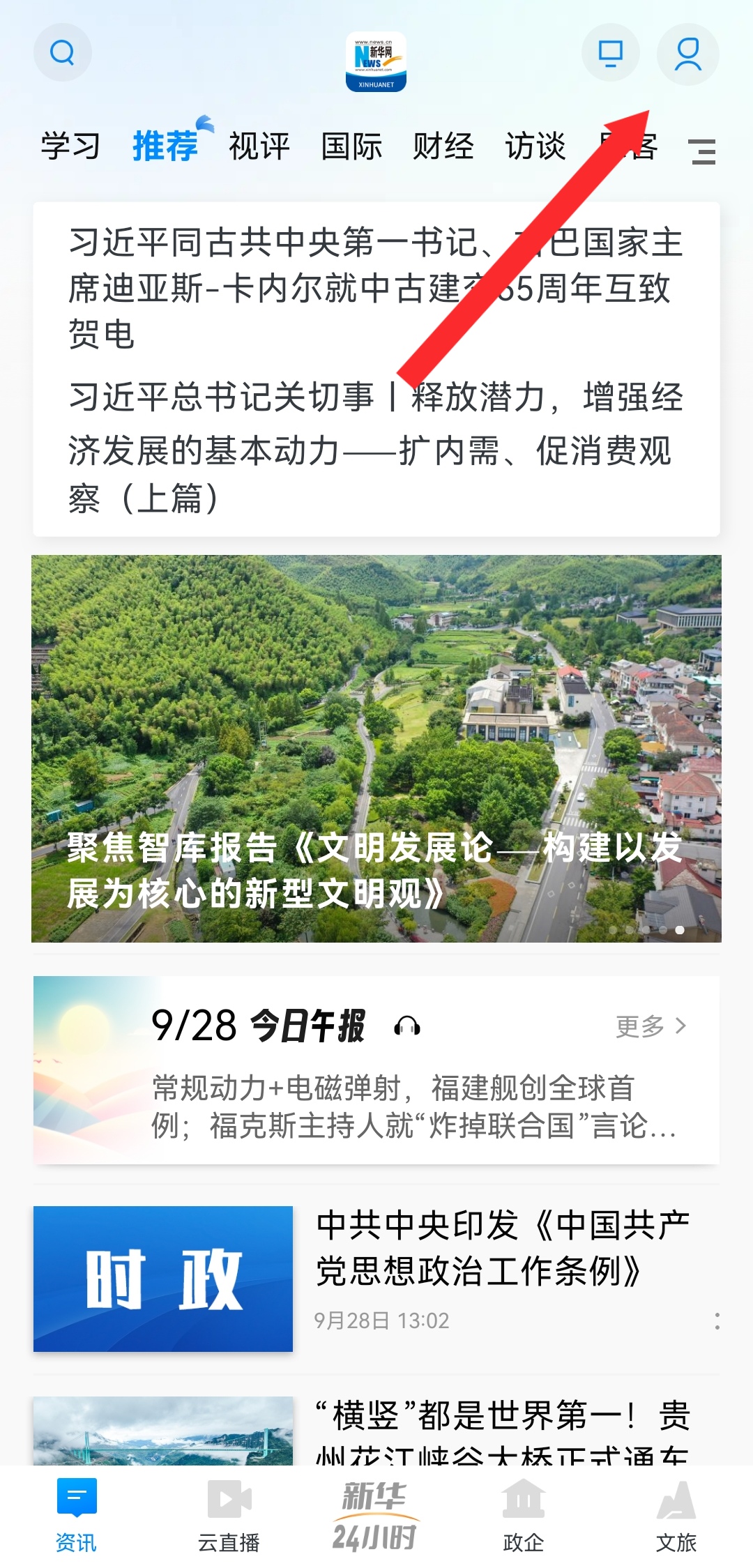 1、在新華網(wǎng)的首頁,點擊右上角個人的圖標(biāo),進(jìn)入個人的頁面。