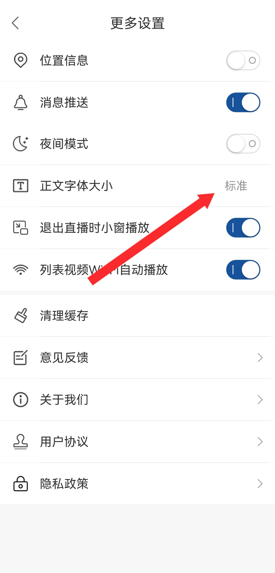 3、在設(shè)置界面,點擊正文字體大小,進(jìn)入字體大小設(shè)置頁面。