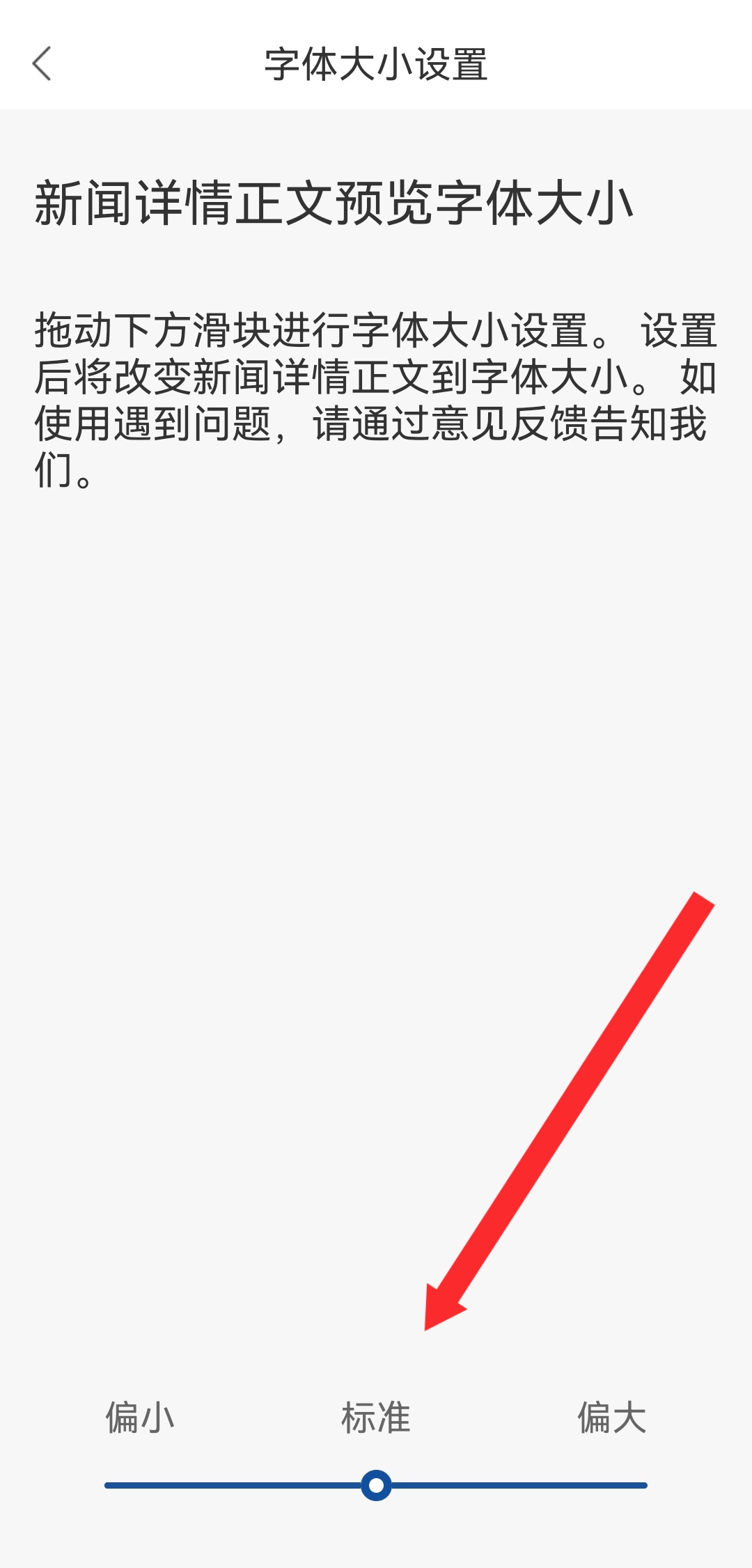 4、在字體大小設(shè)置頁面,拖動滑塊調(diào)整字體大小,完成設(shè)置。