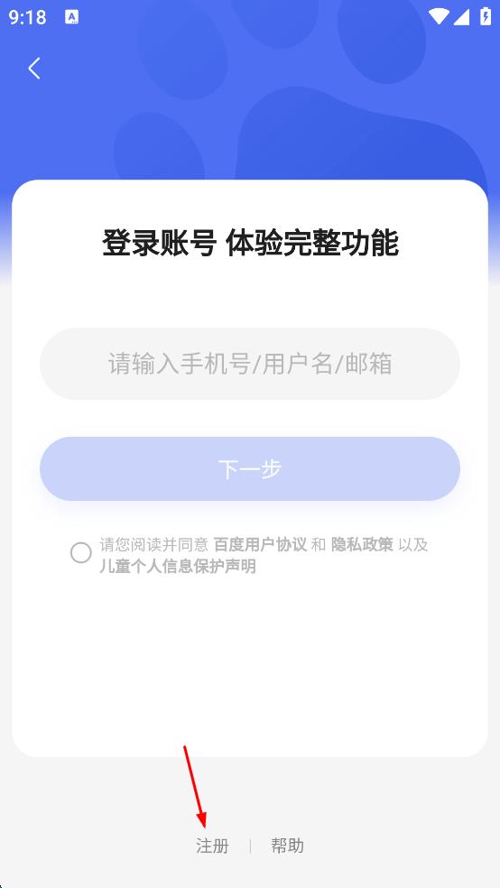 3、在登錄賬號頁面,找到下方“注冊”選項并點擊,進入注冊百度賬號頁面。