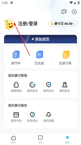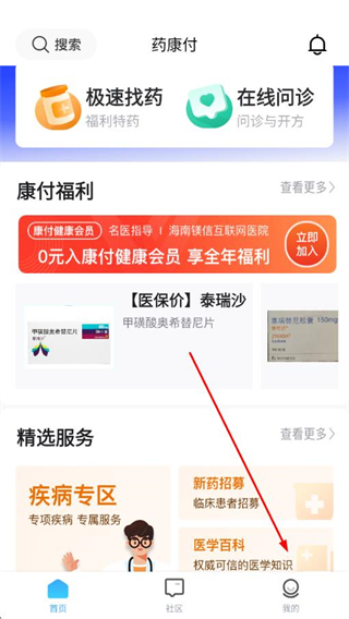 1、打開藥康付APP,點(diǎn)擊導(dǎo)航欄中的我的。