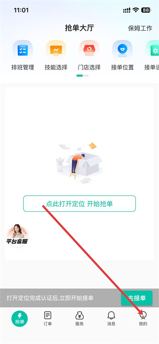 1、打開(kāi)58到家工作端,點(diǎn)擊底部導(dǎo)航欄我的。