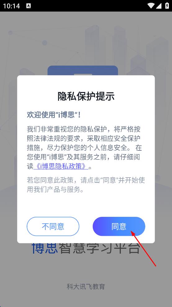 1、進入i博思平臺,在隱私保護提示彈窗中,點擊同意按鈕,進入登錄界面。