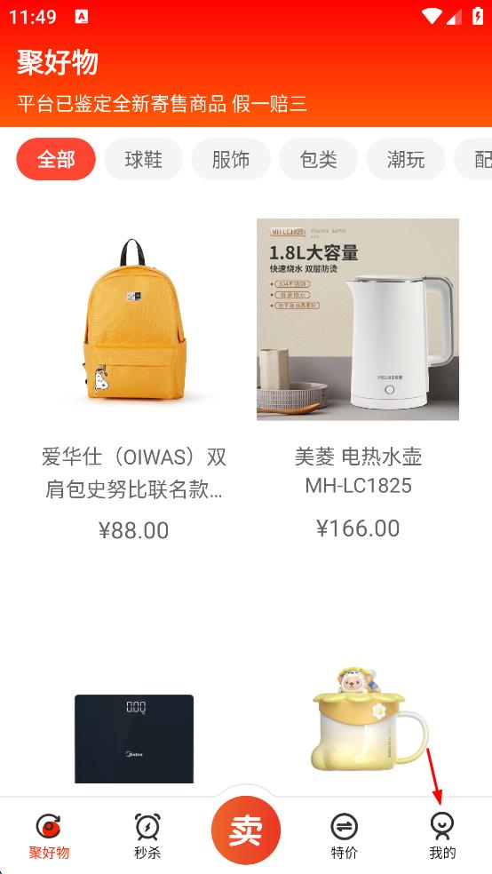 2、進(jìn)入聚好物頁(yè)面后,能看到各類商品展示,若要登錄賬號(hào),點(diǎn)擊頁(yè)面右下角的“我的”選項(xiàng),進(jìn)入個(gè)人相關(guān)界面。