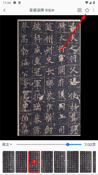 4、進(jìn)入碑帖查看頁面后,點(diǎn)擊頁面右上方的收藏圖標(biāo),即可完成對該碑帖的收藏。