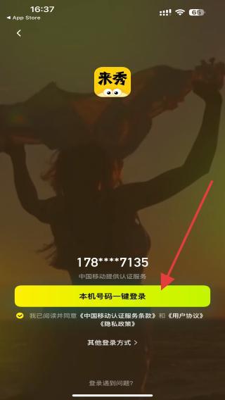 2、點擊后彈出登錄模式,點擊本機號碼一鍵登錄的按鈕。