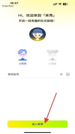 3、登錄后,可設(shè)置頭像以及昵稱,設(shè)置后點擊進入來秀的按鈕。