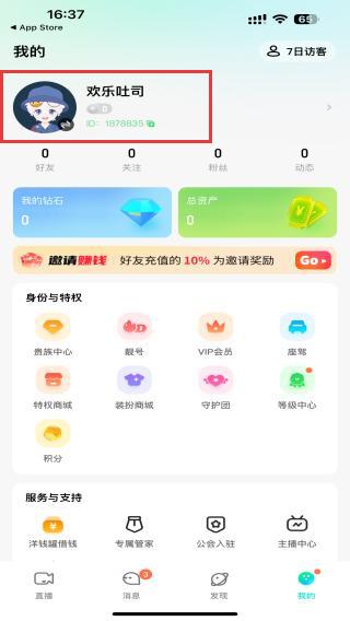 4、登錄成功后,會自動跳轉(zhuǎn)至個人頁面內(nèi),在此頁面內(nèi)可查看用戶昵稱與頭像。