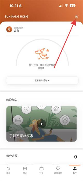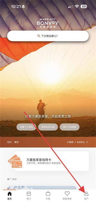 1、打開萬豪旅享家APP,點擊底部導(dǎo)航欄的賬戶。