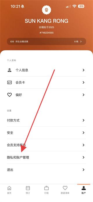 3、在賬戶詳情頁面,點擊隱私和賬戶管理選項,進入隱私和賬戶管理頁面。