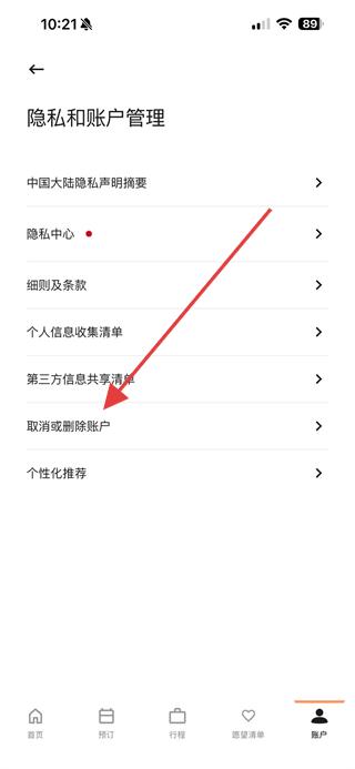 4、在隱私和賬戶管理頁面,點擊取消或刪除賬戶選項,按提示完成賬戶注銷操作。