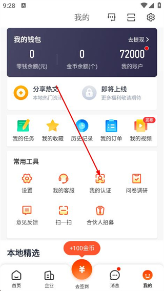 2、在我的頁面中,找到并點(diǎn)擊我的認(rèn)證選項(xiàng),進(jìn)入認(rèn)證中心。