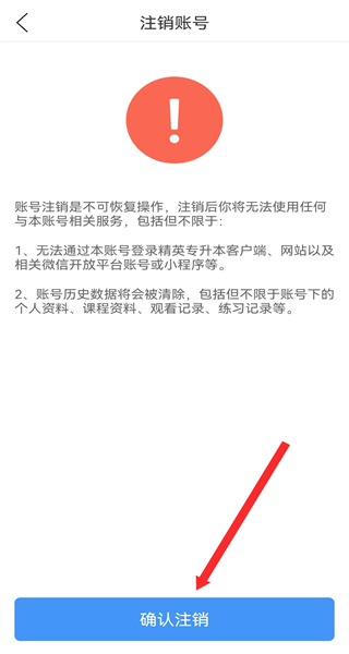 4、在注銷賬號說明頁面,點擊確認注銷,完成賬號注銷的操作。